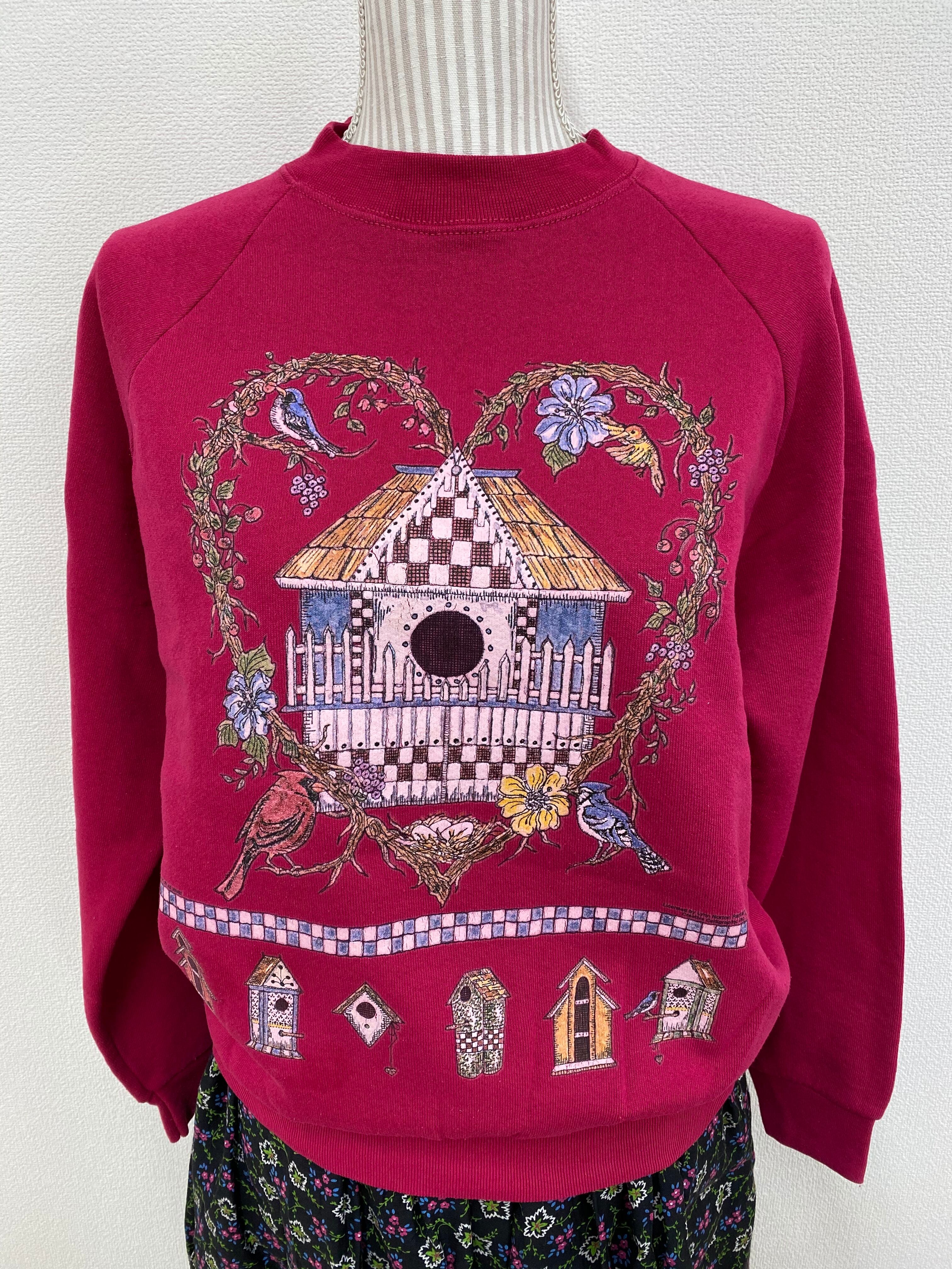 巣箱がプリントされた、フェミニンなプリントのSweat。