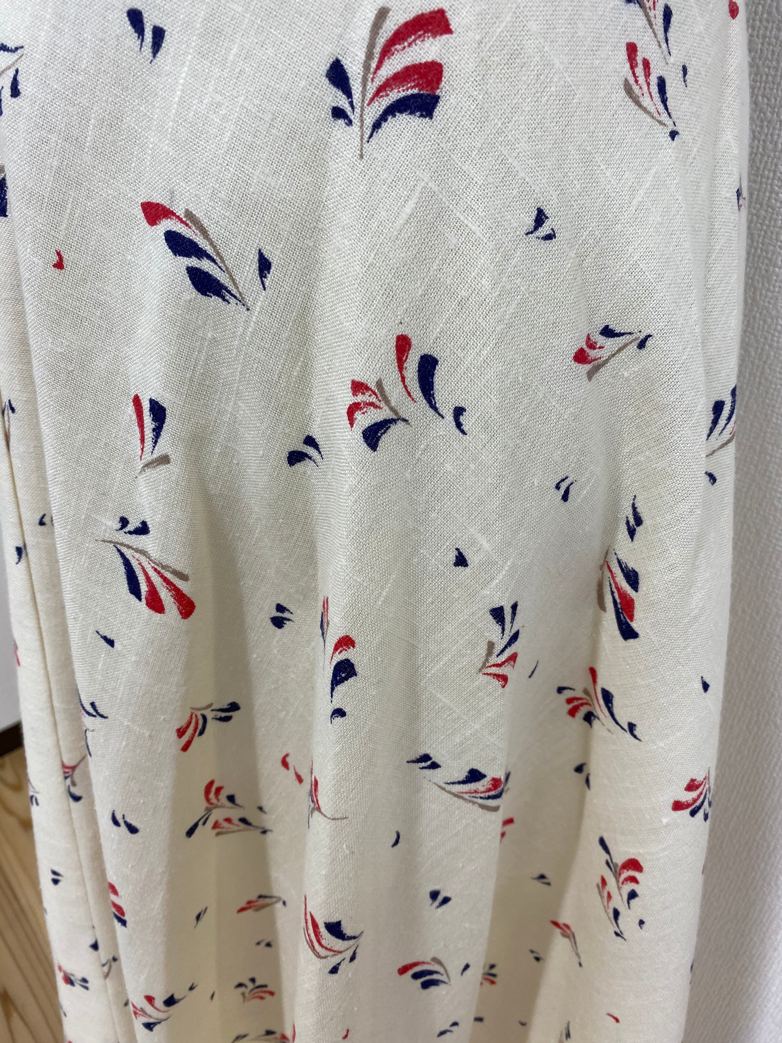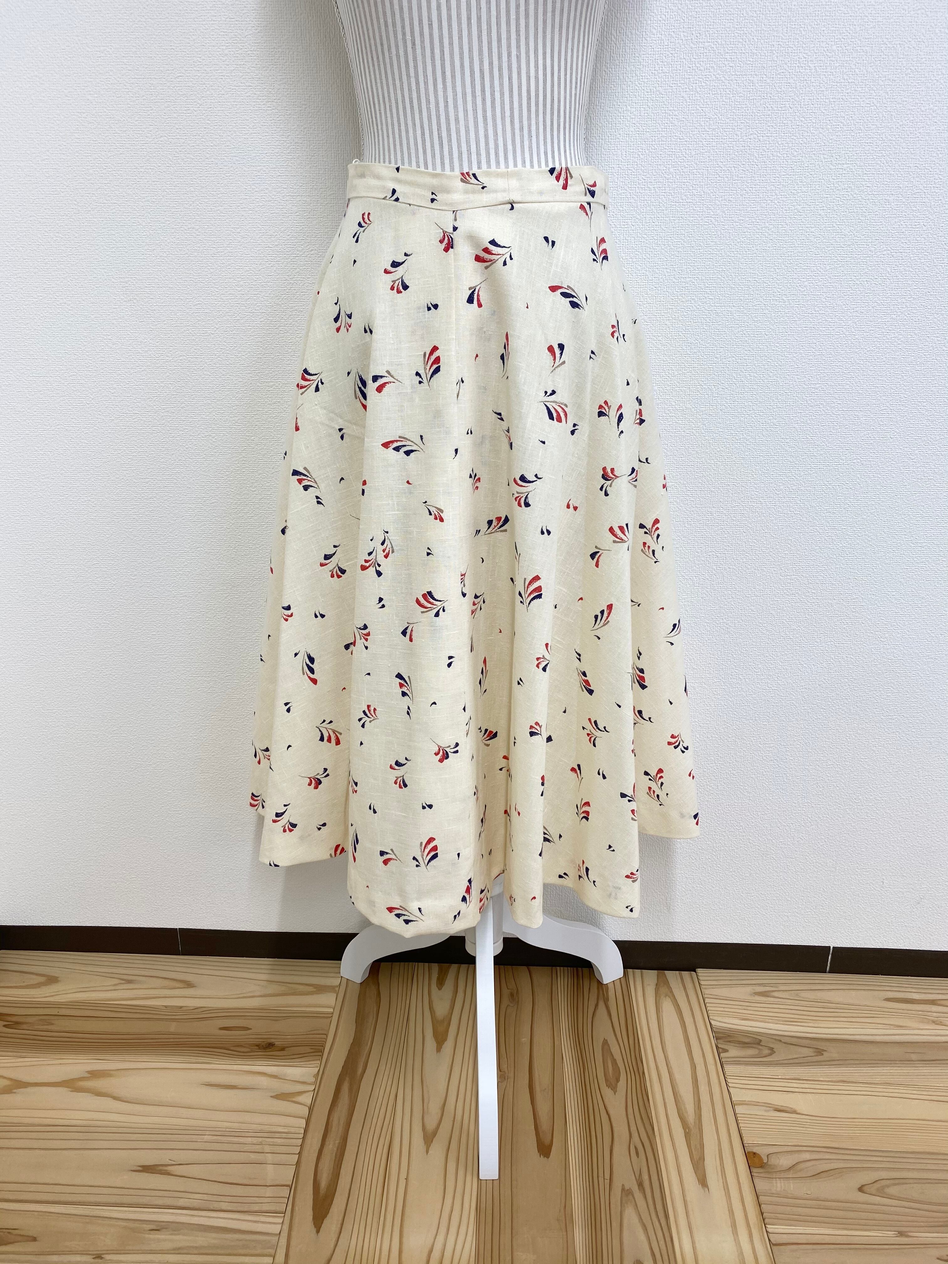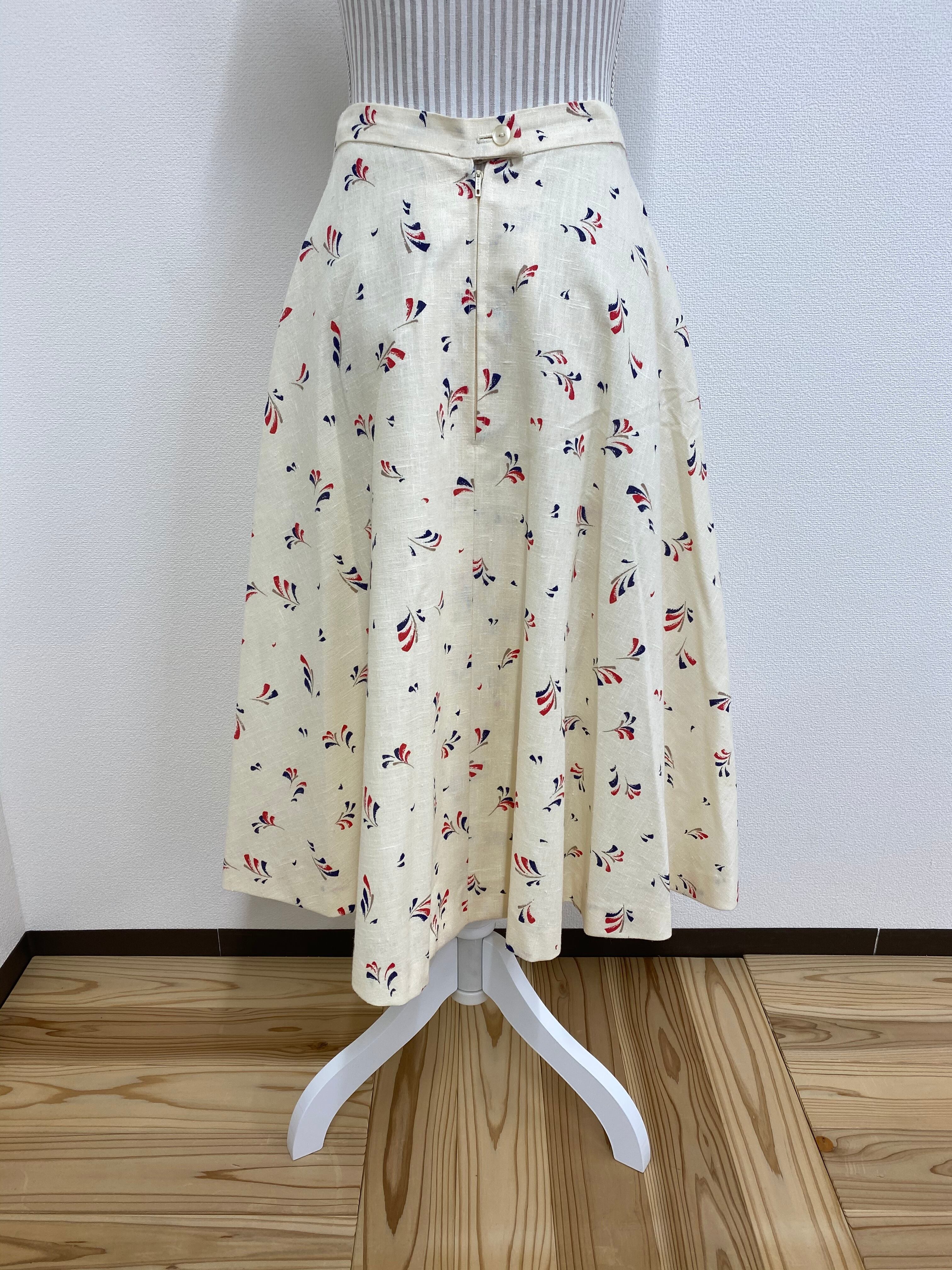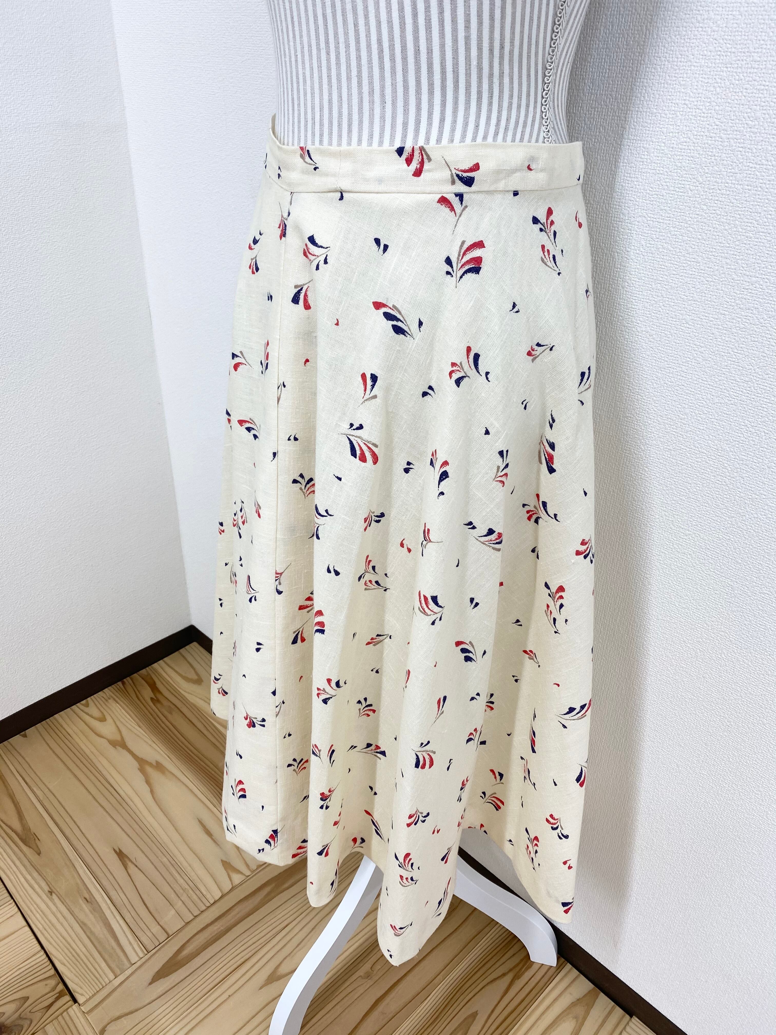 Frenchカラーのプリントがされたリネン調素材のフレアスカート。