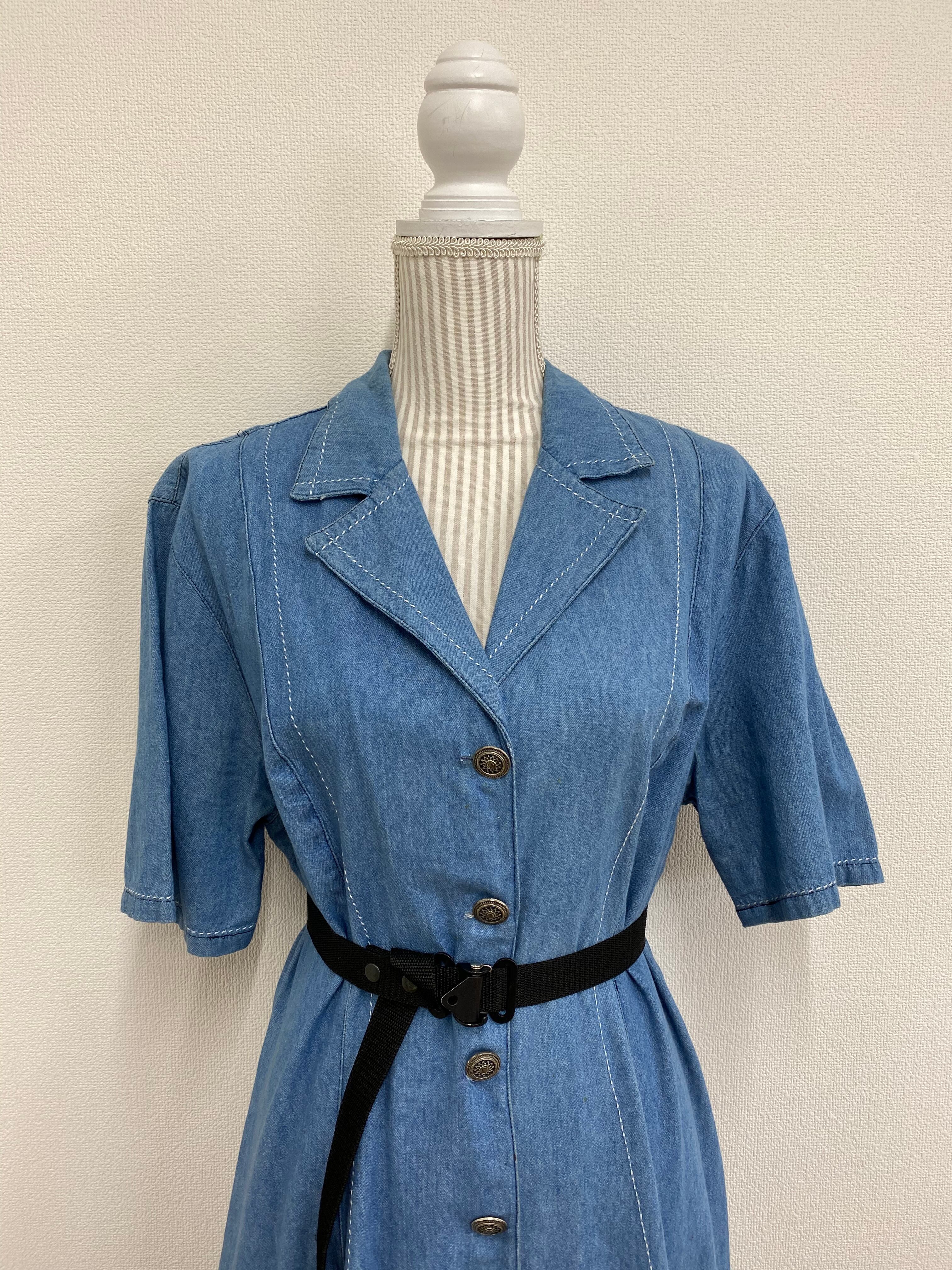 ホワイトステッチがポイントのデニムシャツワンピース。